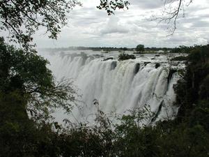 Die Victoria Fälle an der Grenze zwischen Sambia und Zimbabwe. Fotografiert vom Mosi-oa-Tunya Nationalpark auf Sambischer Seite.