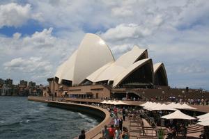 1959 begannen die Bauarbeiten am Sydney Opera House. Die Pläne stammen vom dänischen Architekten Jørn Utzon, der „seine“ Oper nie im fertigen Zustand gesehen hat. Nachdem die Geldmittel für die Oper gekürzt werden sollten, überwarf er sich mit den Bauherren. Er verließ Australien 1966 und betrat den Kontinent nie wieder. Die Oper wurde danach mit einer eigenen Lotterie finanziert. Insgesamt hatte der Bau des Sydney Opera House 102 Millionen Dollar gekostet. Am 20. Oktober 1973 wurde das Opernhaus offiziell von Königin Elisabeth II. eröffnet. Das Gebäude umfasst eine Konzerthalle, einen Opern- und zwei Theatersäle sowie Restaurants, Bars und ein Kino. Im Rahmen des Sydney Festival finden manchmal kostenlose Konzerte und andere Veranstaltungen statt. 2007 wurde das Opernhaus von der UNESCO zum Weltkulturerbe erklärt. Im Rahmen des zweiten Sound and Light Festivals wurde es 3 Wochen lang jeden Abend in anderen Farben angestrahlt. Die Idee hierzu kam vom Künstler Brian Eno.