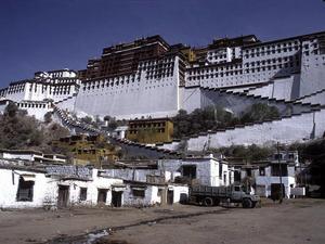 Als heilige Stätte des tibetischen Buddhismus fasziniert der Potala-Palast jährlich zahllose Pilger und Touristen. Er besteht aus drei Hauptteilen: Baigong (weißer Palast) im Osten, Honggong (roter Palast) in der Mitte und weißen Wohnhäusern für Mönche im Westen. Das Hauptgebäude des Potala-Palastes hat 13 Stockwerke und erstreckt sich vom Fuß bis zum Gipfel des Berges.
